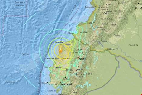 Tối ngày 16/4, một trận động đất mạnh 7,8 đột richter làm rung chuyển bờ biển Ecuador khiến người dân Thủ đô Quito bỏ chạy tán loạn, đồng thời dẫn đến cảnh báo sóng thần dọc bờ biển Ecuador và Colombia.