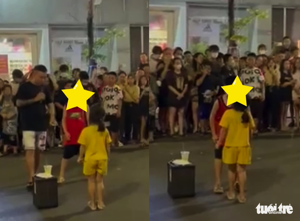 Cụ thể, đêm 24/6 tại đoạn đường Nguyễn Văn Cừ tổ chức màn ghép đôi trên phố đi bộ. Đáng nói, nhân vật được ghép đôi lại là trẻ em một gái một trai. Nam thanh niên dẫn chương trình đã mở loa phát nhạc, giục hai em nhỏ “hôn chạm môi” trước sự chứng kiến của rất đông người vây quanh.