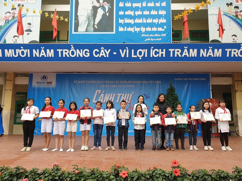 Buổi lễ được bắt đầu bằng nghi thức chào cờ thiêng liêng, đồng thanh hát vang Quốc Ca - Đội ca. Tại buổi trao quà, Ban tổ chức cùng Ban Giám hiệu nhà trường đã trao giải cho các cá nhân và tập thể lớp. Cụ thể là 3 lá thư hay nhất và 3 bưu thiếp đẹp nhất với phần quà trị giá là những suất học bổng toàn phần và quà lưu niệm từ trung tâm. Bên cạnh đó, 96 bạn học sinh khối 3,4,5 tham gia hoạt động trải nghiệm “Cánh thư đảo xa” được trung tâm trao tặng mỗi cá nhân một suất học bổng toàn phần của hệ thống Ocean Edu.