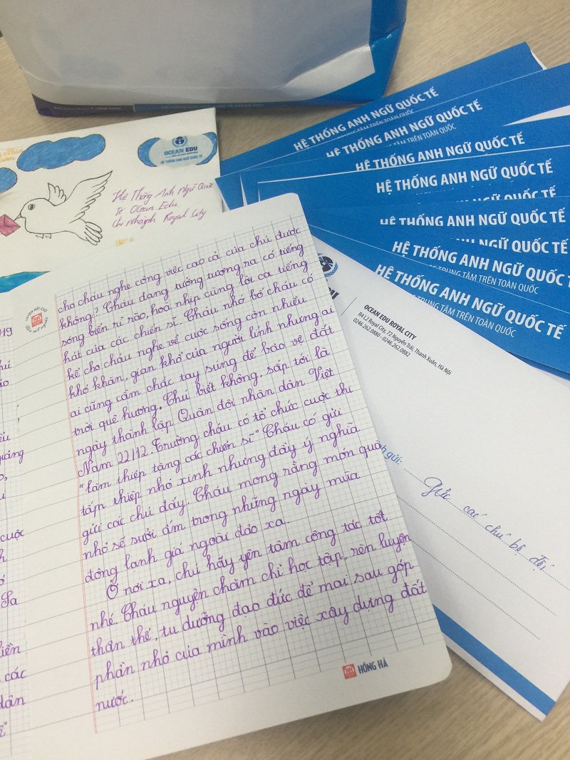 Chia sẻ với PV tại hoạt động này, bà Nhữ Tú Trang - Giám đốc Hệ thống Anh ngữ Quốc tế Ocean Edu chi nhánh Royal City nhấn mạnh: “Mỗi hoạt động của chuỗi chương trình đều mang một màu sắc riêng và đem đến cho các em những trải nghiệm đáng nhớ. Những món quà dù nhỏ bé nhưng là nguồn động viên to lớn và thể hiện sự quan tâm sâu sắc dành cho các em khi học tại nhà trường. Không chỉ vậy, chương trình còn giúp các em thể hiện sự yêu thương, khích lệ lòng biết ơn đến các chú bộ đội ngoài đảo xa, ngày đêm bảo vệ chủ quyền quốc gia.”