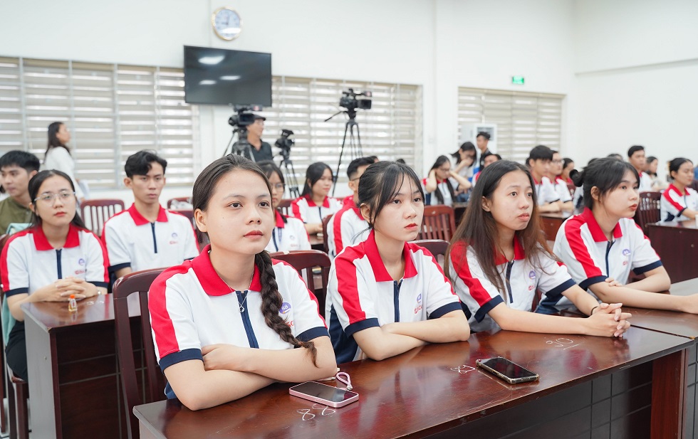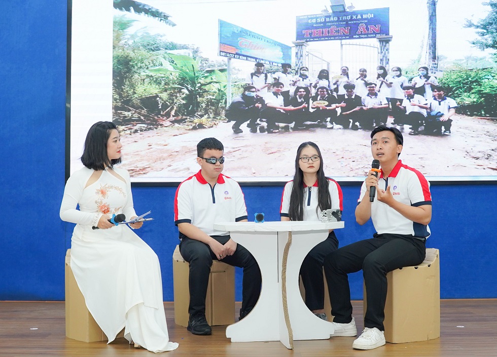 Chương trình giao lưu với đại diện sinh viên tiếp nhận học bổng (từ phải sang) sinh viên Nguyễn Trọng Tính (Đại học Cần Thơ), Ngô Gia Thảo (Đại học Sư phạm TP Hồ Chí Minh), Huỳnh Ngọc Hiếu (Đại học Kinh tế TP. Hồ Chí Minh).