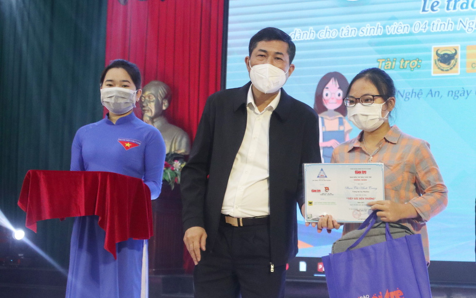 Được biết, chương trình học bổng "Tiếp sức đến trường" thuộc chương trình "Vì ngày mai phát triển" của báo Tuổi trẻ. Sáng 4/12, tại trường ĐH Vinh, 68 tân sinh viên có hoàn cảnh khó khăn thuộc khu vực Bắc Trung Bộ đã được trao học bổng.