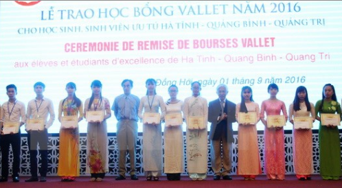 Phát biểu tại buổi lễ, giáo sư Odon Vallet, nhà tài trợ học bổng Vallet ghi nhận sự cố gắng học tập của học sinh, sinh viên ba tỉnh miền Trung là Quảng Bình, Quảng Trị và Hà Tĩnh trong năm học 2015-2016; cho rằng học bổng Vallet là món quà nhỏ nhằm tiếp sức các em đến trường, vượt qua giai đoạn khó khăn trước ảnh hưởng của sự cố môi trường biển.