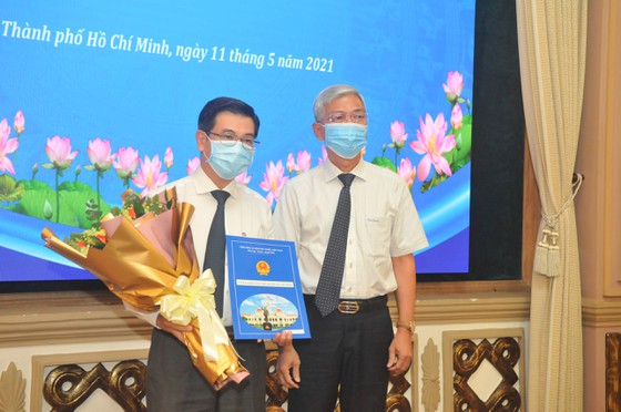 Phó Chủ tịch UBND TP.HCM Võ Văn Hoan trao quyết định tới ông Nguyễn Văn Dũng - Ảnh: CAO THĂNG.