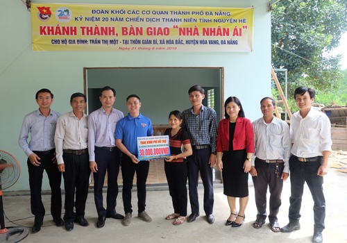 HOANHAP.VN - Hưởng ứng chào mừng kỷ niệm 20 năm Chiến dịch thanh niên tình nguyện hè, ngày 21-8, Đoàn thanh niên khối các cơ quan thành phố phối hợp với Ban Chấp hành Đoàn xã Hòa Bắc (huyện Hòa Vang) tổ chức bàn giao “Nhà nhân ái” cho hộ gia đình chị Trần Thị Một, dân tộc Cơ tu có hoàn cảnh khó khăn tại thôn Giàn Bí, xã Hòa Bắc, huyện Hòa Vang với số tiền hỗ trợ là 30 triệu đồng do các đoàn viên thanh niên thuộc Đoàn khối các cơ quan thành phố đóng góp.