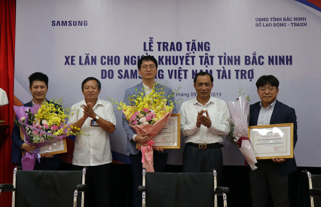 HOANHAP.VN - Sáng 20/9/2019, Sở Lao động, Thương binh và Xã hội phối hợp với Sở Văn hóa, Thể thao và Du lịch tỉnh Bắc Ninh, Samsung Việt Nam tổ chức chương trình trao tặng 220 xe lăn cho người khuyết tật và tặng 25 suất học bổng cho trẻ em nghèo tỉnh Bắc Ninh năm 2019.