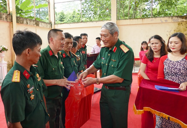 Chủ tịch Hội Hỗ trợ nạn nhân bom, mìn Việt Nam, Trung tướng Nguyễn Đức Soát tặng quà.