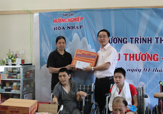 Nhân dịp Quốc tế thiếu nhi 1/6, Hoanhap.vn cùng Hội doanh nhân Hà Nội đã tổ chức chương trình đầy ý nghĩa "Trao yêu thương, nhận nụ cười". Thay mặt đoàn thiện nguyện, ông Nguyễn Ngọc Quyết - Tổng biên tập Hoanhap.vn đã phát biểu về ý nghĩa chương trình, với mong muốn đem đến cho các em nhỏ tại Nhà tình thương một ngày Tết thiếu nhi thật vui vẻ và ấm áp tình người, đồng thời tôn vinh sự tận tuỵ và giàu lòng nhân ái của các cô giáo tại đây, hy vọng các cô sẽ luôn giữ sức khoẻ để chăm sóc và dạy dỗ cho các em sớm hoà nhập với cộng đồng.