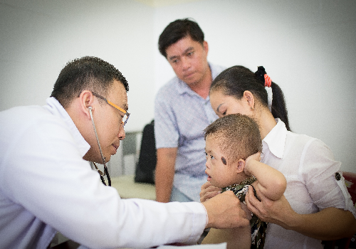 Trong chương trình, các bé sẽ được bác sĩ khám lâm sàng và siêu âm tim. Những trường hợp có chỉ định phẫu thuật hoặc can thiệp tim mạch sẽ được đưa về Trung tâm Tim mạch - Bệnh viện Đại học Y dược TP.HCM để theo dõi và điều trị.
