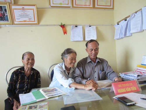 | Bà Nguyễn Thị Bắc (ngồi giữa) nguyên là xã đội phó xã Minh Tân, huyện Kiến Xương, tỉnh Thái Bình người trực tiếp nhận giấy báo tử quân nhân Hoàng Văn Đại |