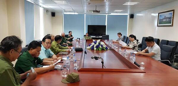 | Các thương binh của Xí nghiệp Tập thể Thương binh Quang Minh ngồi chờ làm việc với lãnh đạo UBND TP. Hạ Long hôm 20/5/2019 |