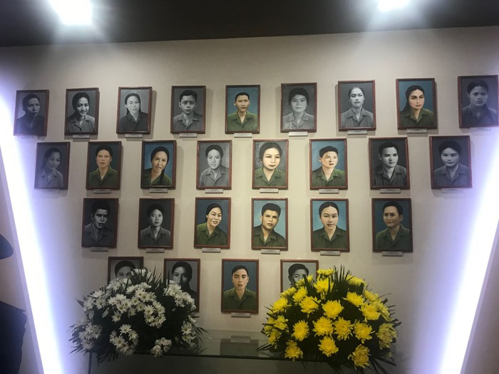 | Hình ảnh các chiến sĩ TNXP Đại đội TNXP 915, Đội 91 Bắc Thái hy sinh năm 1972 được lưu giữ tại Khu di tích. |