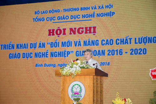 Phát biểu kết luận Hội nghị, TS Nguyễn Hồng Minh, Tổng Cục trưởng nhấn mạnh nguồn kinh phí từ Chương trình mục tiêu là một trong các nguồn lực quan trọng nhằm đổi mới và nâng cao chất lượng giáo dục nghề nghiệp của hệ thống và thực hiện các nhóm giải pháp của Đề án “Đổi mới và nâng cao chất lượng giáo dục nghề nghiệp đến năm 2020, định hướng đến năm 2025”. Vì vậy, đề nghị các địa phương, cơ sở giáo dục nghề nghiệp cần tích cực triển khai đồng bộ, có hiệu quả các nhiệm vụ và giải pháp của Dự án, trong đó đặt trọng tâm vào một số nhiệm vụ giải pháp sau: Đổi mới trong tổ chức đào tạo; chương trình đào tạo phải được thiết kế linh hoạt, đáp ứng chuẩn đầu ra của nghề; ứng dụng công nghệ thông tin trong dạy và học, quản lý đào tạo, đáp ứng yêu cầu đào tạo trong cuộc cách mạng 4.0. Tăng cường công tác đào tạo, bồi dưỡng kiến thức chuyên môn, kỹ năng nghề, nghiệp vụ sư phạm cho đội ngũ nhà giáo nhằm đáp ứng yêu cầu dạy và học. Thực hiện tốt công tác định hướng, phân luồng theo Quyết định số 522/QĐ-TTg của Thủ tướng Chính phủ ngày 14/5/2018 về phê duyệt Đề án “Giáo dục hướng nghiệp và định hướng phân luồng học sinh trong giáo dục phổ thông giai đoạn 2018-2025”. Ngoài ra, cần tập trung xây dựng và trình cấp có thẩm quyền phê duyệt Dự án đầu tư ngành, nghề trọng điểm đến năm 2020 theo đúng hướng dẫn của Tổng cục Giáo dục nghề nghiệp; thực hiện phân bổ, quản lý và sử dụng kinh phí Dự án theo đúng nội dung, mục tiêu của Dự án.