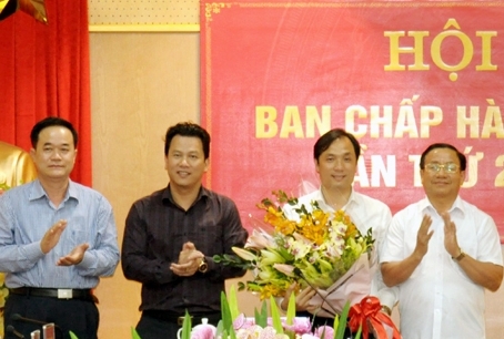 | Lãnh đạo tỉnh Hà Tĩnh chúc mừng đồng chí Hoàng Trung Dũng được bầu giữ chức Phó Bí thư Thường trực Tỉnh ủy Hà Tĩnh. |