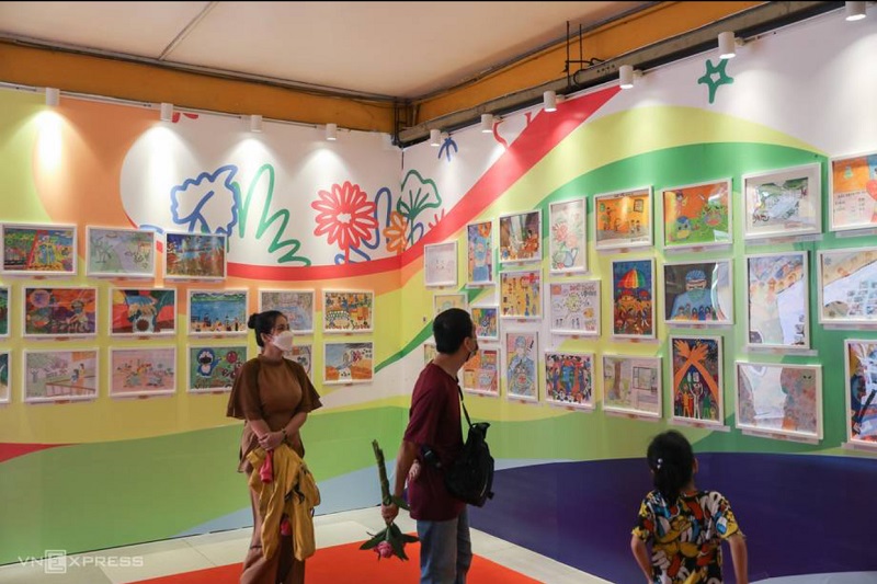 400 bức tranh của trẻ em yếu thế được trưng bày triển lãm tại chùa Vĩnh Nghiêm và chùa Giác Ngộ. (Ảnh: Nguồn Kênh Báo Mới)