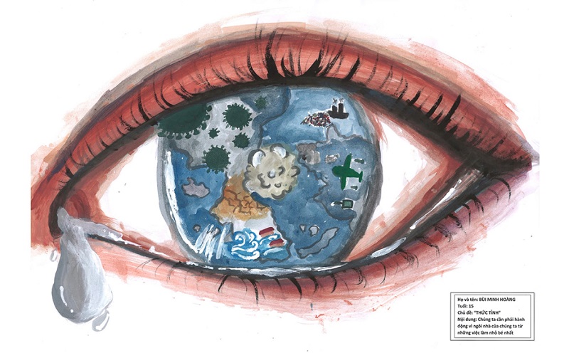 Bức tranh với chủ đề “Thức tỉnh” với nội dung: “Chúng ta cần phải hành động vì ngôi nhà của chúng ta từ những hoạt động nhỏ bé nhất” (Ảnh: Nguồn Kênh Báo Mới)