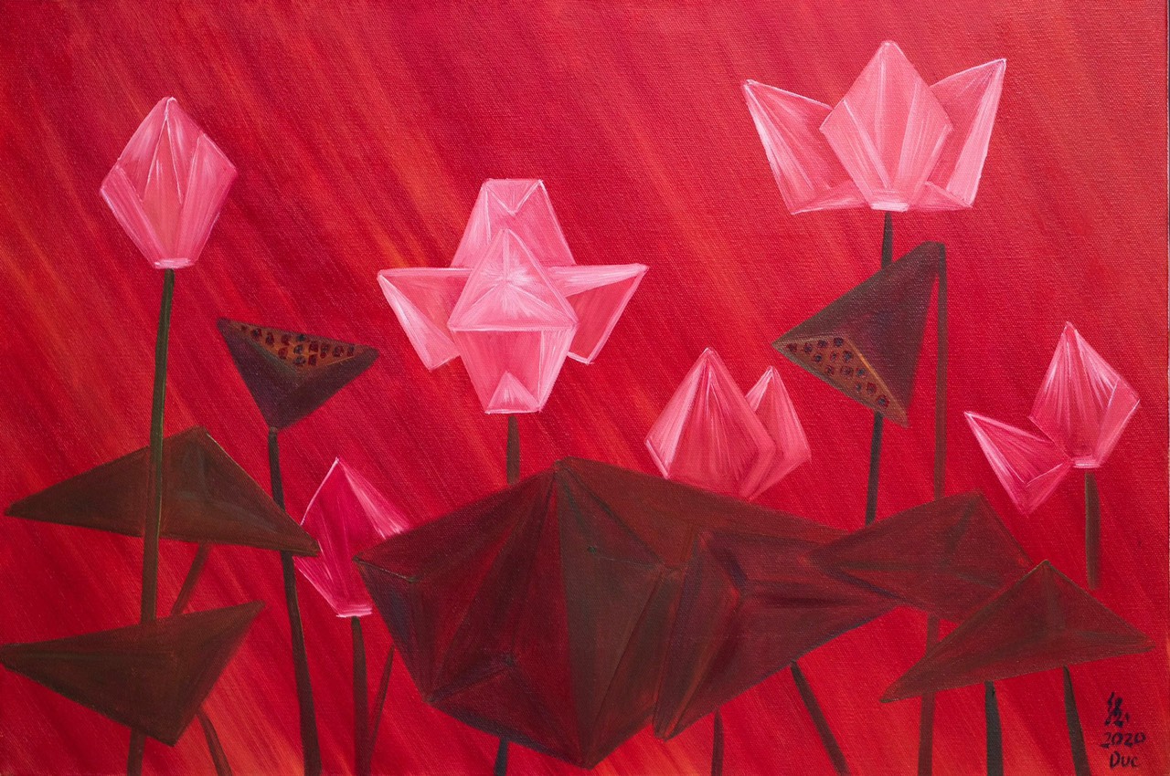 Qua hàng ngàn năm lịch sử, hoa Sen đã trở thành biểu tượng cho tâm hồn, cốt cách của dân tộc Việt Nam, trong Phật giáo, Sen là biểu tượng tâm linh tối thượng, thể hiện Phật tính vốn có trong mỗi con người. Thấu hiểu những ý nghĩa biểu tượng cao đẹp ấy, họa sĩ Phật tử Kim Đức đã luôn sáng tạo và cống hiến để mang đến cho đời nhiều bức tranh đẹp về loài hoa này. Đặc biệt bức “Liên Hoa Tịnh Cảnh” của họa sĩ Phật tử Kim Đức đã được Giáo hội Phật giáo Việt Nam cho trưng bày tại Đại hội Đại biểu Phật giáo toàn quốc lần thứ IX (2022).
