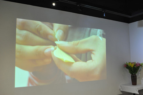 | Quy tình làm tranh được trình chiếu tại triển lãm. |