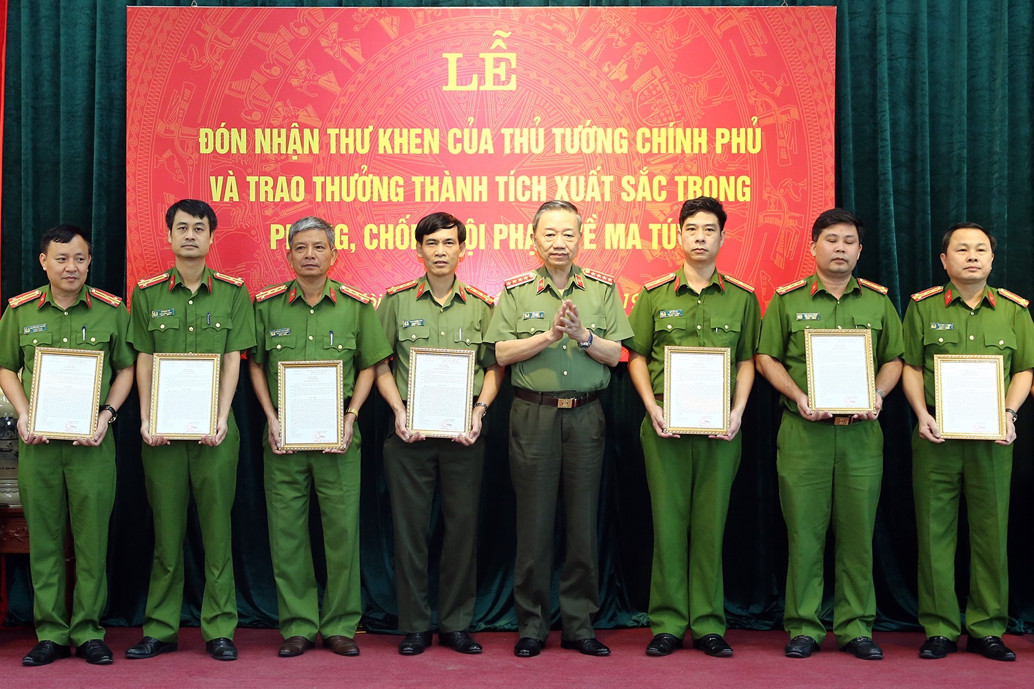| Bộ trưởng Bộ Công an Tô Lâm trao quyết định khen thưởng của Bộ trưởng Bộ Công an cho các tập thể tham gia đấu tranh trong chuyên án 626T |
