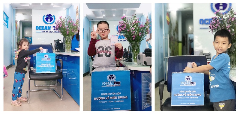 Với tinh thần tương thân tương ái, “lá lành đùm lá rách”, Hệ thống Anh ngữ Ocean Edu với hơn 100 chi nhánh đã kêu gọi tất cả những tấm lòng hảo tâm xa gần trên khắp mọi miền của Tổ quốc: từ Cán bộ nhân viên, Giáo viên đến các Học viên của Ocean Edu trên toàn hệ thống. Theo đó, hòm quyên góp mang sắc xanh Ocean Edu hiện diện tại hơn 100 chi nhánh trên toàn quốc không chỉ mang thông điệp “hạnh phúc đến từ những điều nhỏ nhặt nhất” mà còn thể hiện mỗi giáo viên, mỗi học viên Ocean Edu, dù ít hay nhiều cũng đều đóng góp một phần nhỏ bé, chung tay giúp đỡ đồng bào vượt qua khó khăn này.