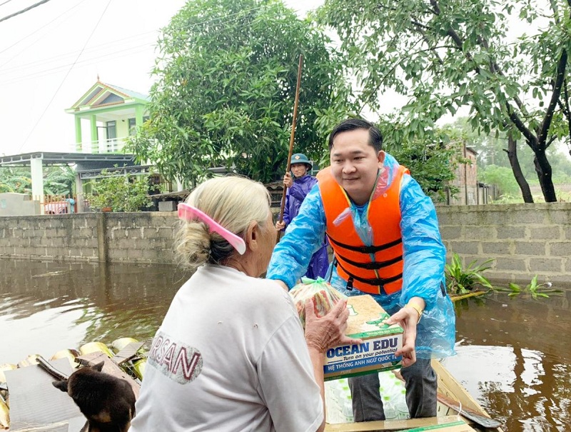 Ông Nguyễn Văn Thưởng - Phó Chủ tịch HĐQT Ocean Edu Việt Nam trực tiếp trao tặng ủng hộ cho người dân vùng lũ.