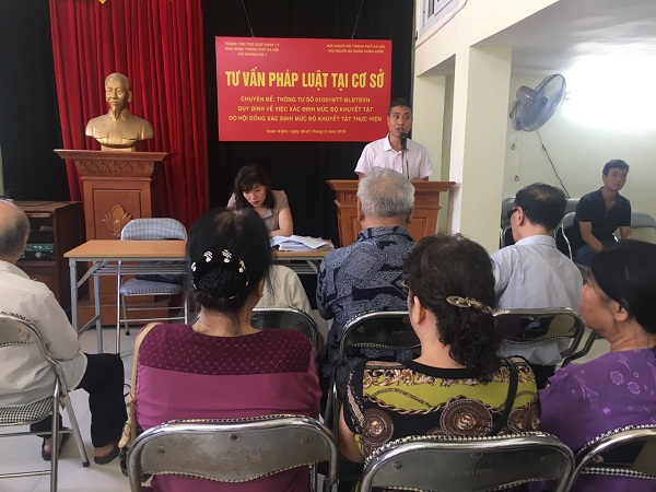 Anh Hoàng Văn Lý - Chủ tịch hội người mù Hoàn Kiếm cho biết: Hiện nay, tổ chức hội có gần 100 hội viên khiếm thị đang sinh sống trên địa bàn 18 phường thuộc quận Hoàn Kiếm. Trong những năm vừa qua, hội rất coi trọng công tác phổ biến các chính sách pháp luật của nhà nước đến với những người khiếm thị. Được sự giúp đỡ của chi nhánh trợ giúp pháp lí số 2 ‘trung tâm trợ giúp pháp lí TP Hà Nội’ hội đã tiến hành nhiều chuyên đề gắn liền với người khuyết tật như: Luật người khuyết tật, nghị định hướng dẫn thi hành luật người khuyết tật, nghị định quy định về chính sách bảo trợ xã hội.
