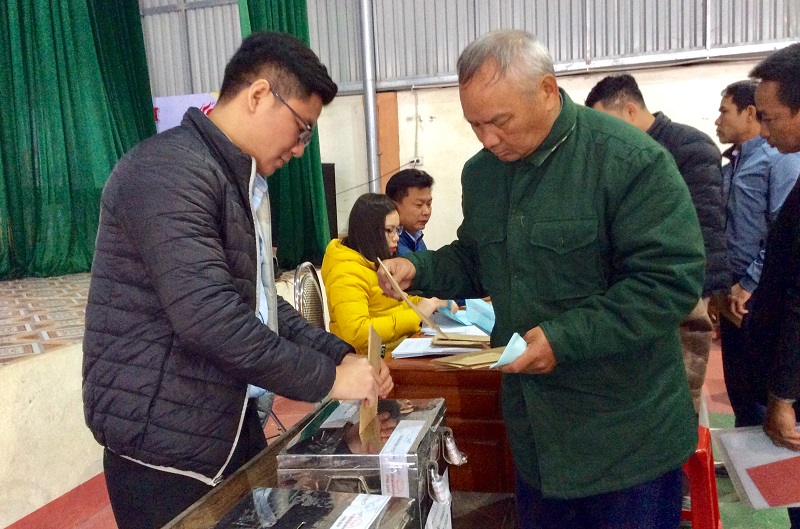 Đến chiều cùng ngày, đúng 14 giờ các bộ phận liên quan, cũng như khách hàng đã có mặt đầy đủ tại địa điểm để nghe công bố giá. Trước lúc công bố giá, để thể hiện sự dân chủ, minh bạch, công khai rõ ràng có đại diện tổ giám sát của UBND TX Hoàng Mai, UBND phường Mai Hùng, khách hàng đã ký vào biên bản niêm phong sáng nay lên tiến hành kiểm tra và mở thùng phiếu. Đồng thời, để cho khách hàng nắm rõ hơn; thay mặt Trung tâm, ông Nguyễn Khắc Hùng - Đấu giá viên một lần nữa quán triệt cho khách hàng nắm về một số trường hợp phiếu trả giá không hợp lệ. Như trong đơn đăng ký của khách hàng và trong phiếu trả giá ghi không đầy đủ các thông tin về địa chỉ; đấu giá lô đất số bao nhiêu; diện tích; ở vùng quy hoạch nào..? Khách hàng trả trên giá khởi điểm nhưng dưới mức giá tối thiểu của lô đất; trong phiếu trả giá của khách hàng, giữa chữ và số không khớp nhau; cũng như bị tẩy hoặc xóa.