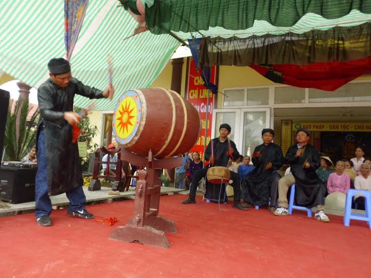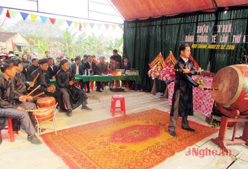 Thi trống tế trong ngày Hội chùa Gám ở huyện Yên Thành