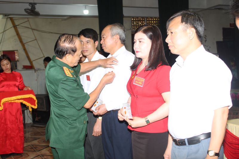 Được sự ủy quyền của Chủ tịch Hội CCB Việt Nam, Đại tá Lê Xuân Thu, Phó Chủ tịch Thường trực Hội CCB tỉnh Nam Định trao Kỷ niệm chương Hội CCB Việt Nam cho đồng chí Nguyễn Thị Thu Thủy, nguyên Bí thư Huyện ủy Trực Ninh, nay là Giám đốc Sở LĐTB&XH tỉnh Nam Định cùng các đồng chí trong Ban Thường vụ huyện ủy, Thường trực HĐND, lãnh đạo UBND huyện Trực Ninh - Ảnh: Hồ Thanh