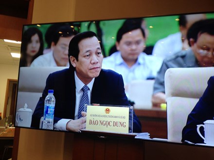 Bộ trưởng Đào Ngọc Dung tại phiên chất vấn sáng nay 18.4.