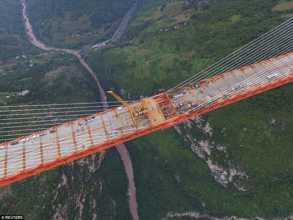 Trong số 10 cây cầu cao nhất thế giới hiện nay, 8 công trình là ở Trung Quốc, phần lớn tại các vùng nông thôn, miền núi. Hai cây cầu khác nằm ở Papua New Guinea và Mexico. Ảnh: Reuters.