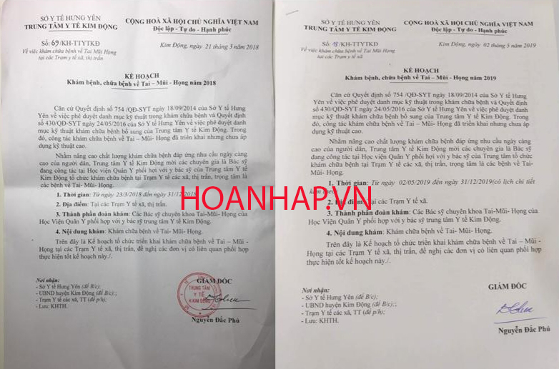 Thừa thắng xông lên, tiếp nối “thành công” của những năm trước, năm nay, ngày 2/5/2019, ông Nguyễn Đắc Phú- Giám đốc Trung tâm Y tế Kim Động lại ký ban hành Kế hoạch khám chữa bệnh về Tai- Mũi- Họng số 18/KH-TTYTKĐ gửi trạm y tế các xã, thị trấn trên địa bàn huyện với nội dung: “Nhằm nâng cao chất lượng khám, chữa bệnh cho người dân, Trung tâm Y tế Kim Động đã mời các chuyên gia là bác sỹ đang công tác tại Học viện Quân y, cùng tổ chức khám, chữa bệnh tại các trạm y tế xã, thị trấn. Trọng tâm là các bệnh về Tai- Mũi- Họng, thời gian từ ngày 2/5/2019 đến ngày 31/12/2019”.