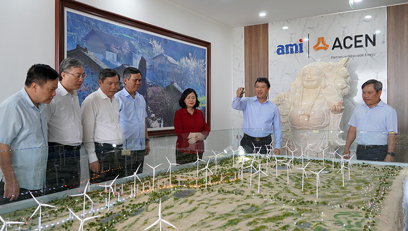 Trưởng ban Dân vận Trung ương bà Bùi Thị Minh Hoài và các thành viên đoàn công tác, các lãnh đạo tỉnh thăm Cụm trang trại điện gió B&T