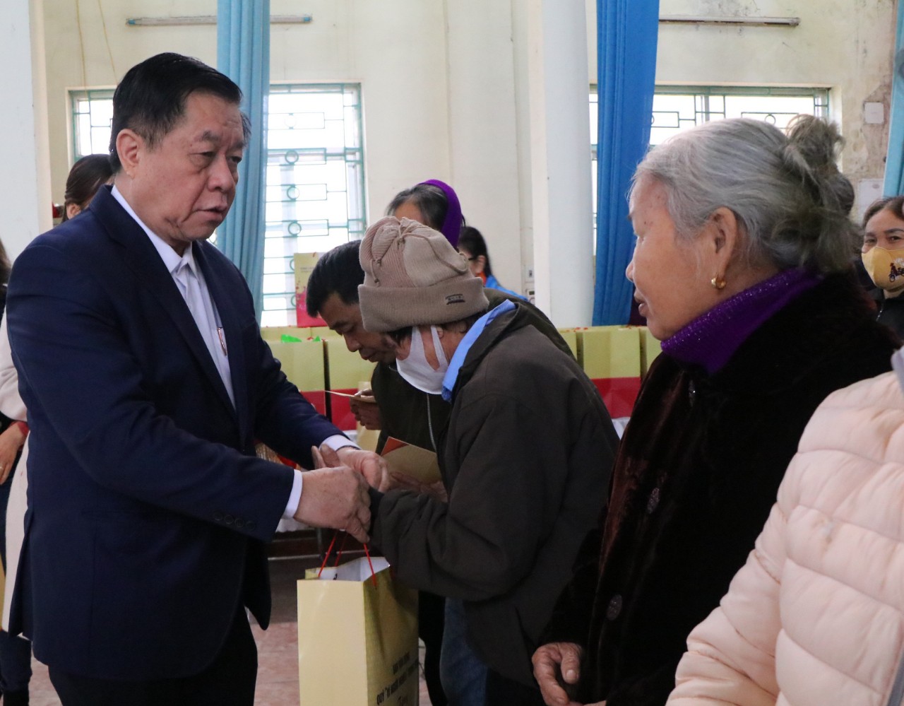 Trưởng ban Tuyên giáo Trung ương Nguyễn Trọng Nghĩa trao quà cho người dân có hoàn cảnh khó khăn tại Thị xã Phú Thọ.