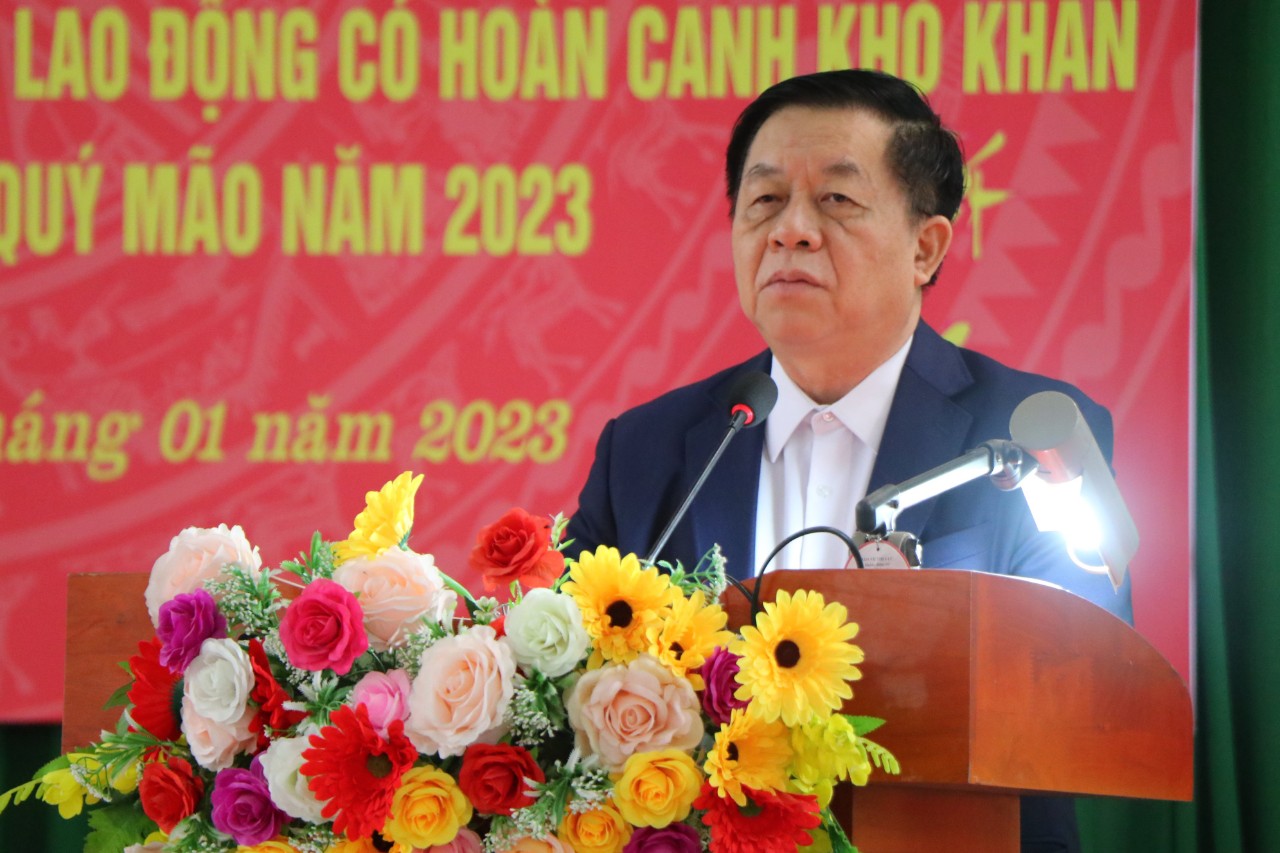 Đồng chí đề nghị các cấp, các ngành, cấp ủy, chính quyền địa phương phải có những việc làm thiết thực hơn nữa nhằm chăm lo cho các hộ nghèo, công nhân có hoàn cảnh khó khăn để họ có cuộc sống ngày càng tốt hơn và chúc các người dân và công nhân lao động vui xuân đón Tết an toàn, tiết kiệm.
