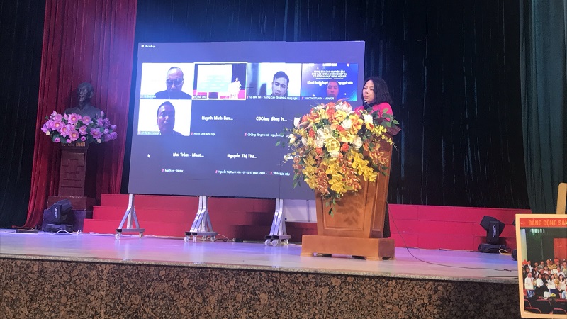 TS. Trịnh Thị Thu Hà - Bí thư Đảng uỷ, Hiệu trưởng Trường Cao đẳng thương mại và du lịch Hà Nội phát biểu.