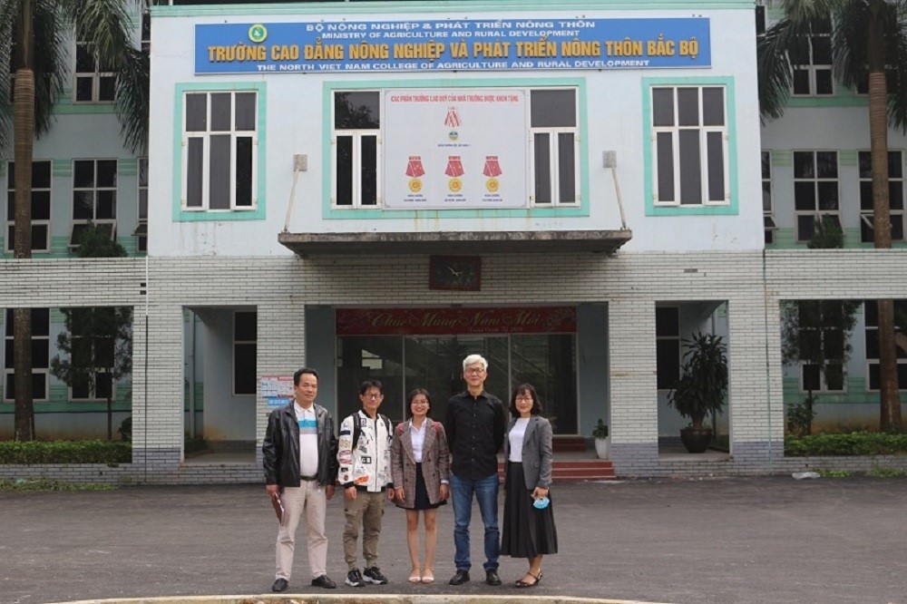 Cán bộ trường Cao đẳng Nông nghiệp và Phát triển Nông thôn Bắc bộ chụp ảnh lưu niệm cùng đoàn cán bộ Đài Loan của Công ty Cổ phần MCORP.
