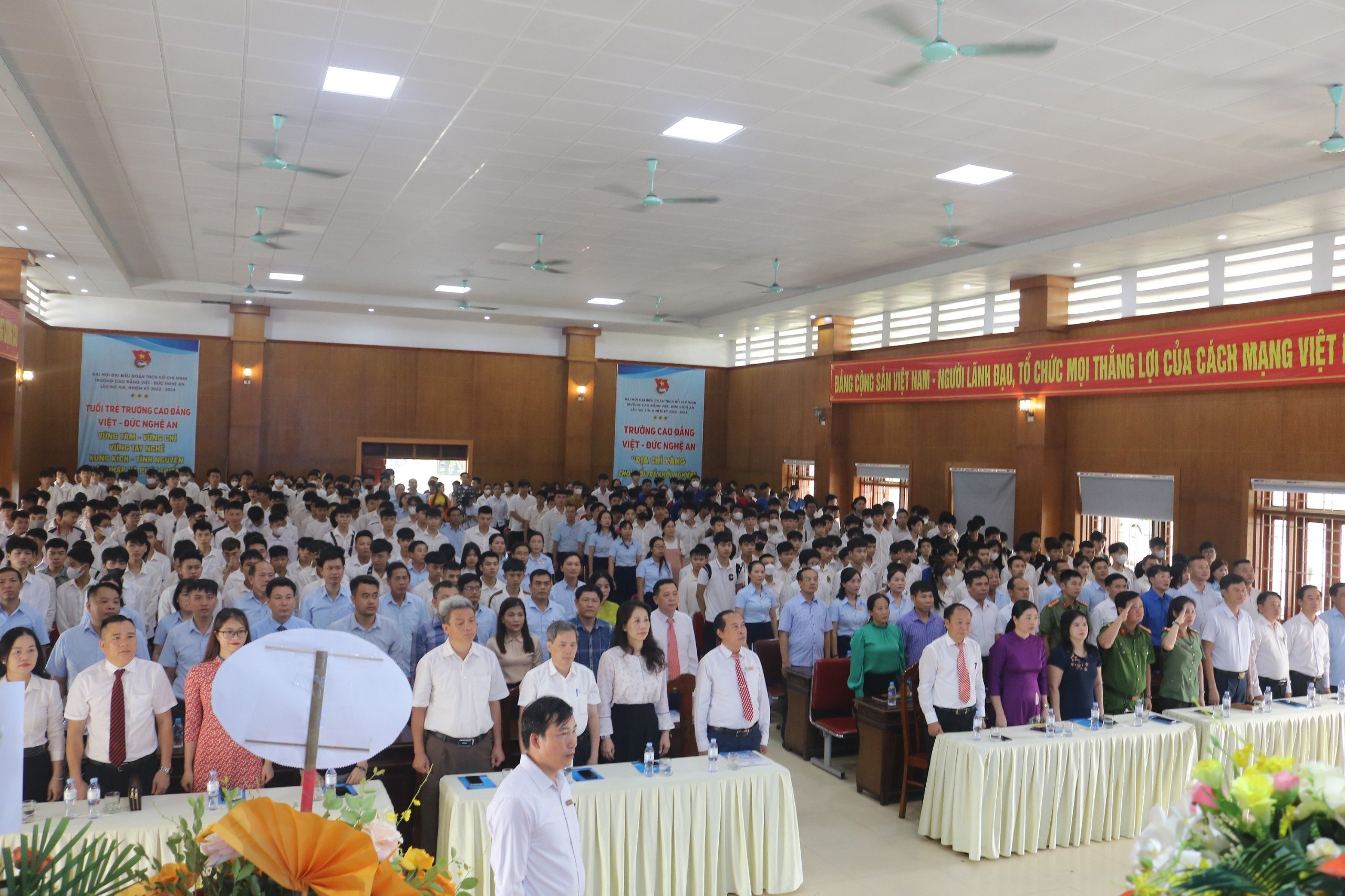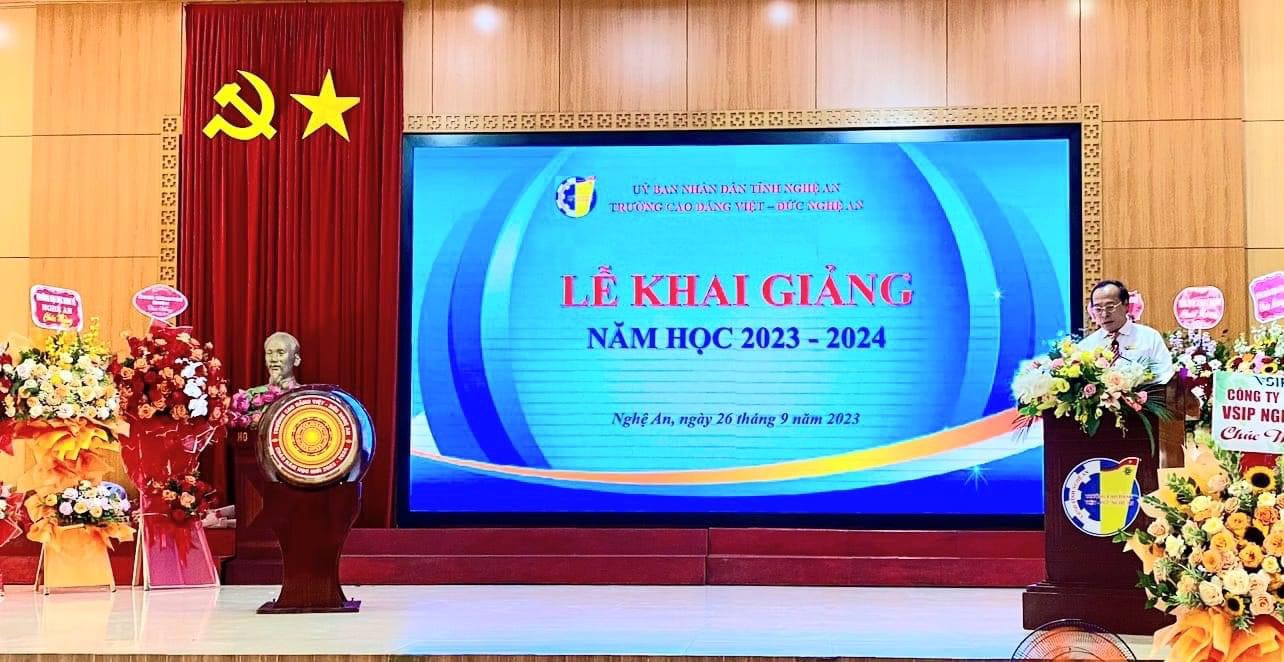 Phát biểu tại lễ khai giảng, Hiệu trưởng Trường Cao đẳng Việt-Đức Nghệ An, Th.S Nguyễn Hữn Hằng cho biết: “Trong năm qua, tập thể lãnh đạo Nhà trường luôn đoàn kết, trách nhiệm, năng động và sáng tạo. Với truyền thống lâu đời, Nhà trường đã xây dựng được đội ngũ cán bộ, giảng viên dày dặn kinh nghiệm, có bản lĩnh, trí tuệ, tâm huyết, tận tụy vì người học. Các hoạt động giáo dục, đào tạo, nghiên cứu khoa học của Nhà trường đã góp phần nâng cao dân trí, đào tạo nhân lực, tạo lớp người lao động có trình độ kỹ thuật tay nghề cao cho tỉnh và khu vực, góp phần đưa tỉnh Nghệ An từng bước trở thành trung tâm văn hóa, giáo dục, khoa học và công nghệ của vùng Bắc Trung Bộ.”