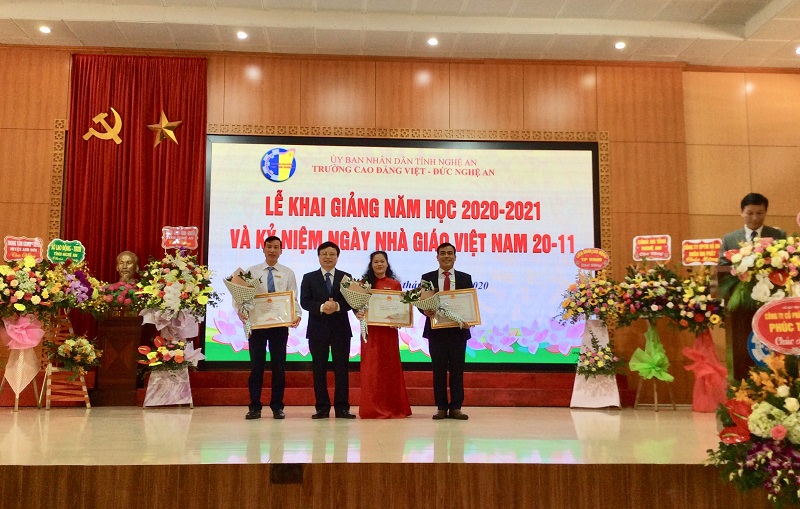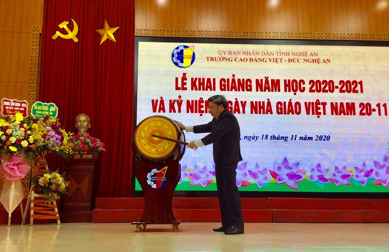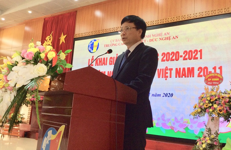 Phát biểu tại buổi lế khai giảng, PGS.Tiến sỹ Bùi Văn Dũng - Bí thư Đảng ủy, Hiệu trưởng nhà trường nhấn mạnh “Chất lượng đào tạo là yếu tố quyết định sự sống còn của trường khẳng định vị trí, uy tín, thương hiệu của nhà trường trong xã hội hiện nay. Chủ điểm của năm học 2020 - 2021 là nâng cao năng lực và sức chiến đấu của Đảng bộ, phát huy trí tuệ và tinh thần đoàn kết của tập thể cán bộ, đảng viên trong toàn trường; xây dựng đội ngũ cán bộ quản lý, giảng dạy, phục vụ có chuyên môn cao, có năng lực quản lý tốt, giảng dạy tốt, phục vụ tốt, thực tâm, thực tài, thực nghề. Đổi mới, sáng tạo phát huy nội lực, tranh thủ ngoại lực quyết tâm xây dựng Trường Cao đẳng Việt - Đức Nghệ An trở thành cơ sở đào tạo nghề chất lượng cao, có uy tín, có năng lực cạnh tranh cao, góp phần nâng tầm kỹ năng lao động Việt, là địa chỉ vàng tin cậy cho tuổi trẻ khởi nghiệp, góp phần vào việc sớm đưa thành phố Vinh trở thành trung tâm vùng trong lĩnh vực Giáo dục – Đào tạo”.