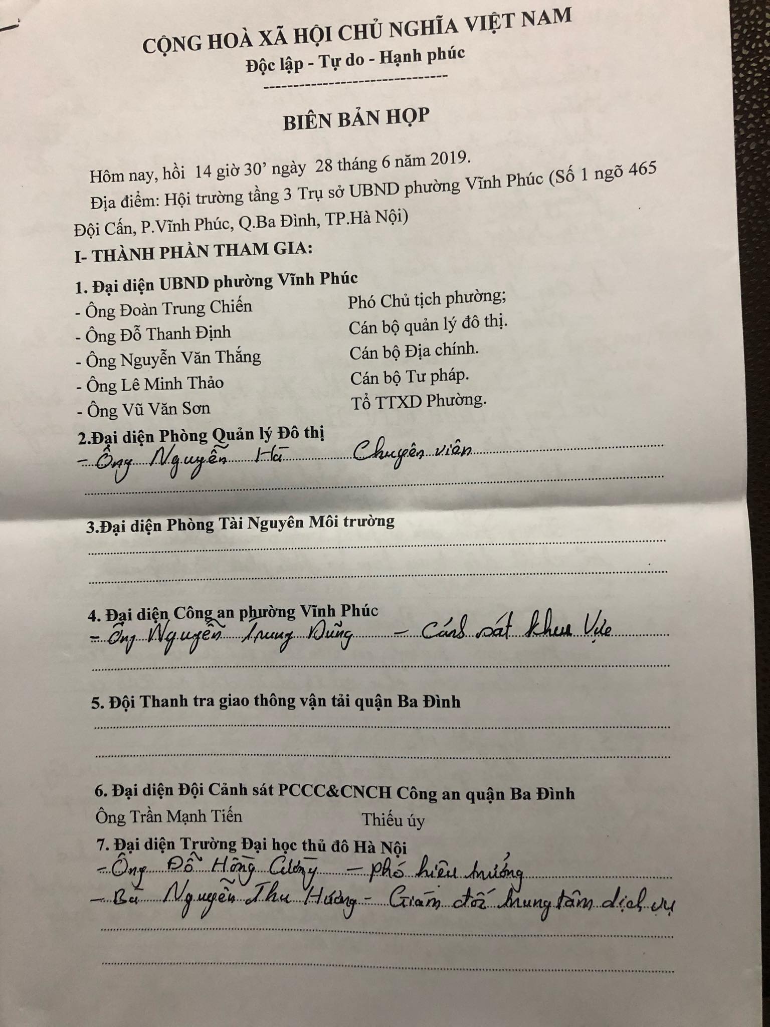 Theo biên bản họp giữa UBND phường Vĩnh Phúc và ông Đỗ Hồng Cường – Phó Hiệu trưởng ngày 28/6/2019. Việc trông xe tại đây do Ban giám hiệu trường Đại học Thủ đô ký hợp tác với công ty TNHH MTV Thịnh Thái để tổ chức dịch vụ trông xe tại đây. Tuy nhiên theo biên bản họp thì hợp đồng giữa hai bên này không có nội dung được trông giữ xe dịch vụ, nếu muốn phải xin phép. Thế nhưng không hiểu bằng cách nào trường Đại học Thủ đô lại cho công ty Thịnh Thái ngang nghiên cho người ngoài vào gửi xe thu vé hàng tháng bất chấp pháp luật.
