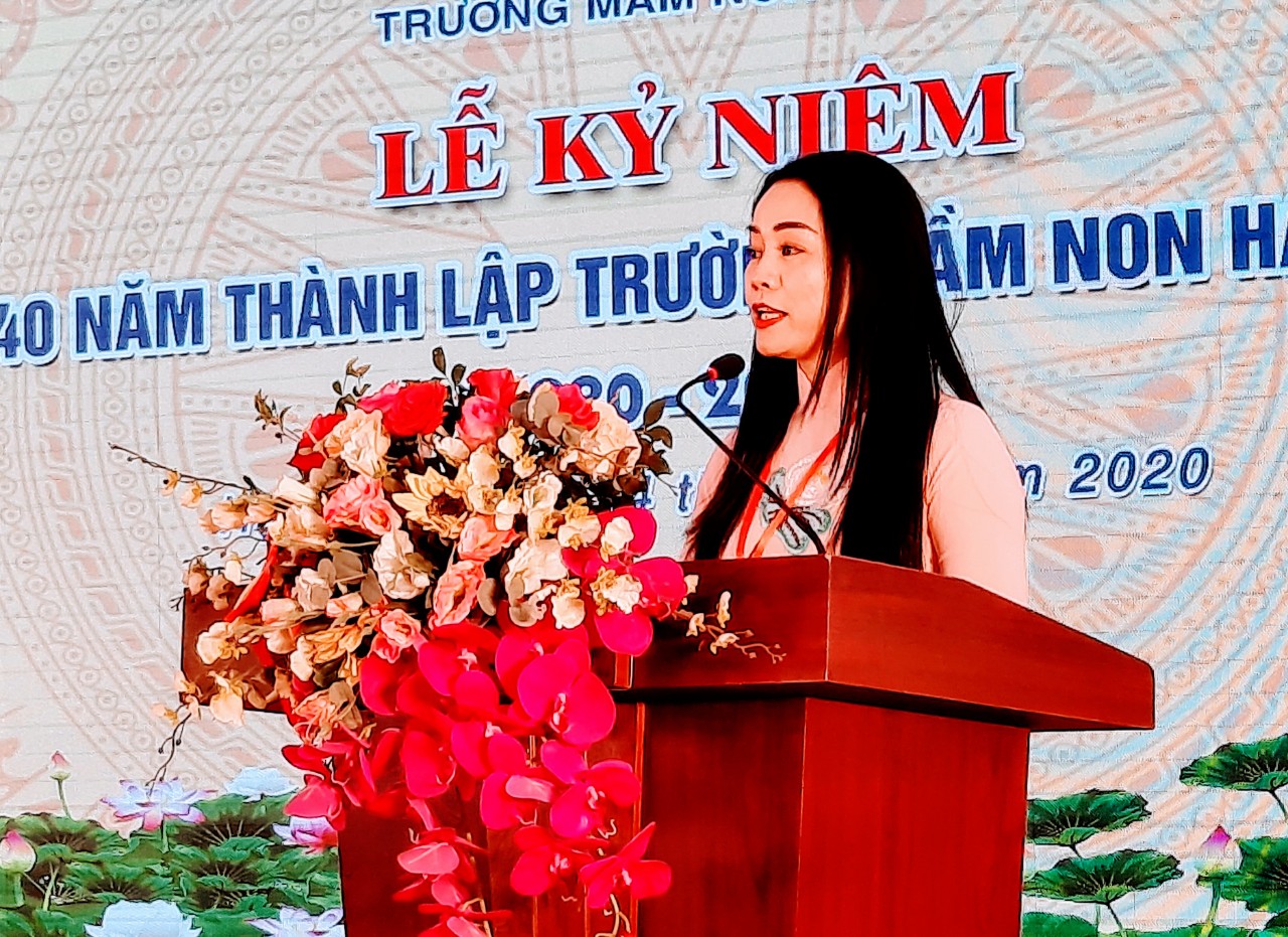 Cô Phạm Minh Huệ, Bí thư chi bộ, Hiệu trưởng Trường Mầm non Hạ Long - Báo cáo quá trình xây dựng và phát triển của nhà trường