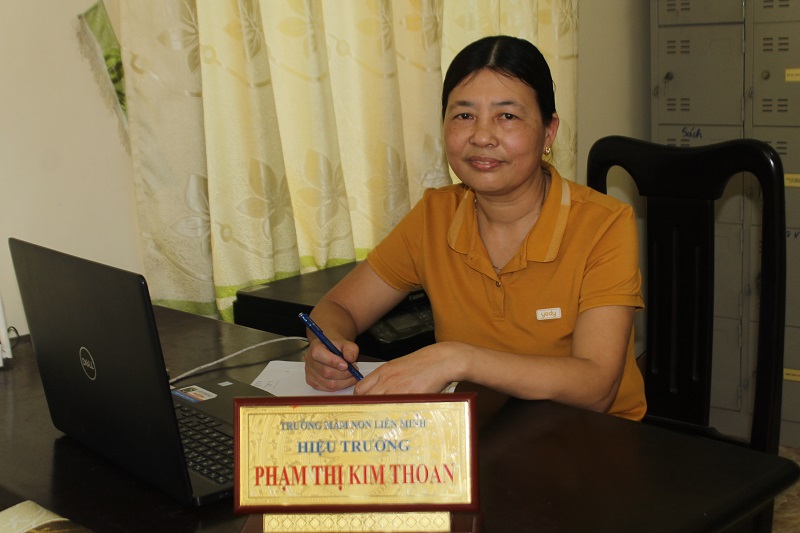 Cô giáo Phạm Thị Kim Thoan, Bí thư chi bộ, Hiệu trưởng Trường Mầm non Liên Minh (Vụ Bản, Nam Định).