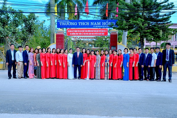 Tập thể cán bộ, giáo viên Trường THCS Nam Hồng (Nam Trực, Nam Định) - Ảnh do cơ sở cung cấp.