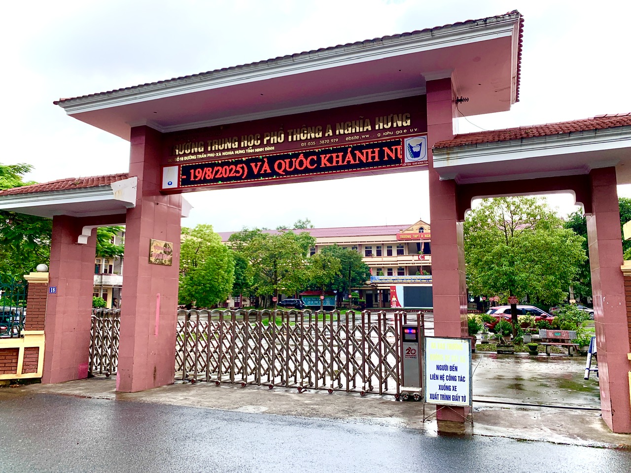 Cổng Trường THPT A Nghĩa Hưng, tỉnh Ninh Bình những ngày đầu năm học mới 2025-2026 - Ảnh: Hồ Thanh