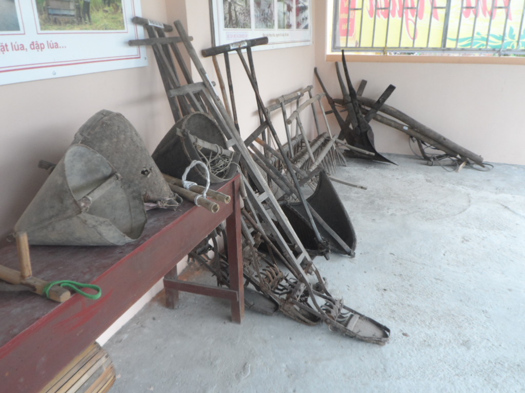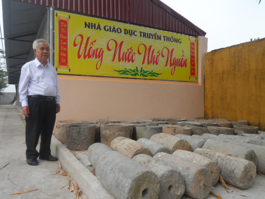 Thầy giáo Đoàn Văn Thoại, Hiệu trưởng nhà trường cho biết, đây là công trình tâm huyết của nhà trường, thiết thực chào mừng kỷ niệm 35 năm Ngày Nhà giáo Việt Nam (20/11/2017). Ý tưởng về đổi mới phương pháp giáo dục lịch sử truyền thống văn hóa qua các hoạt động ngoại khóa của nhà trường đã được hình thành, tổ chức thực hiện từ nhiều năm nay. Tuy nhiên, bản thân hiệu trưởng cùng các cán bộ, giáo viên phải dành nhiều thời gian, công phu sưu tầm, tìm hiểu, lựa chọn hình thức trưng bày trước khi đầu tư xây dựng hoàn thiện. Mô hình “Nhà Giáo dục truyền thống - Uống nước nhớ nguồn” của nhà trường được xây dựng đơn giản, thoáng mát, tại khu vực khá yên tĩnh. Phía trước ngôi nhà được bảo vệ bằng lưới thép, học sinh đứng bên trong hoặc bên ngoài đều có thể trông thấy rõ hiện vật. Những vật nặng như cối đá, trục lăn được xếp gọn gàng bên ngoài, ngay cạnh lối đi. Bên trong trưng bầy từng gian theo chủ đề, có lời thuyết minh và chú thích rõ ràng. Nổi bật nhất là các vật dụng: Cối xay thóc, cối giã gạo, cối xay bột, đòn xóc, đòn gánh, xẻng, cuốc, cày, bừa, gầu giai, gầu sòng, néo đập lúa, thúng mủng, dần, sàng, nong, nia, quang gánh, xe thồ cổ… Trên tường được treo những bức ảnh lớn về nạn đói năm 1945, kéo cày thay trâu, lán học thời chống Mỹ…