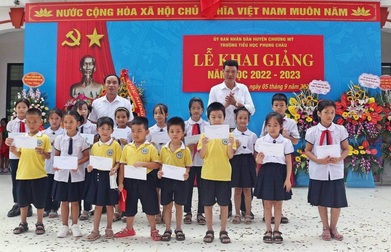 Đảng ủy, Hội đồng nhân dân, Ủy ban nhân dân, Mặt trận Tổ Quốc xã Phụng Châu trao tặng 15 xuất quà cho học sinh nghèo hiếu học, đại diện UBND xã cho biết.