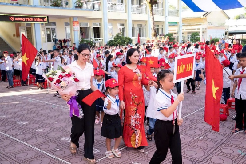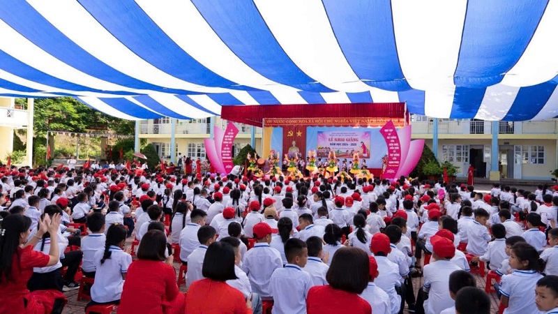 Phát biểu tại buổi lễ khai giảng, cô Phan Thị Nga - Hiệu trưởng nhà trường đã biểu dương những kết quả trong năm học 2023 - 2024 mà thầy và trò toàn trường đã đạt được, đồng thời bày tỏ những hi vọng cho một năm học mới 2024 - 2025 rực rỡ hơn. Trong năm học mới, trường đón 165 học sinh lớp 1, trong đó học sinh là con em dân tộc thiểu số có 31 em chiếm tỉ lệ 19%.
