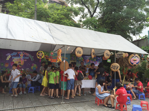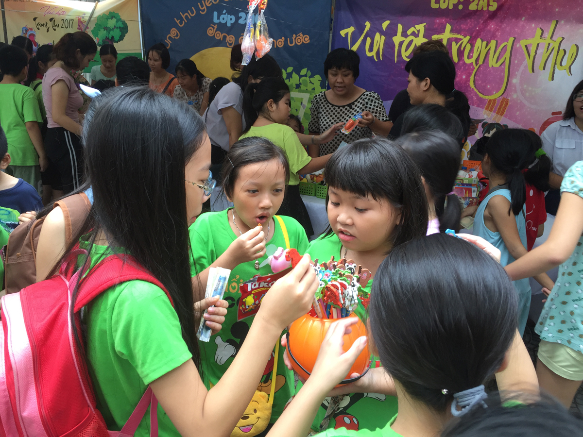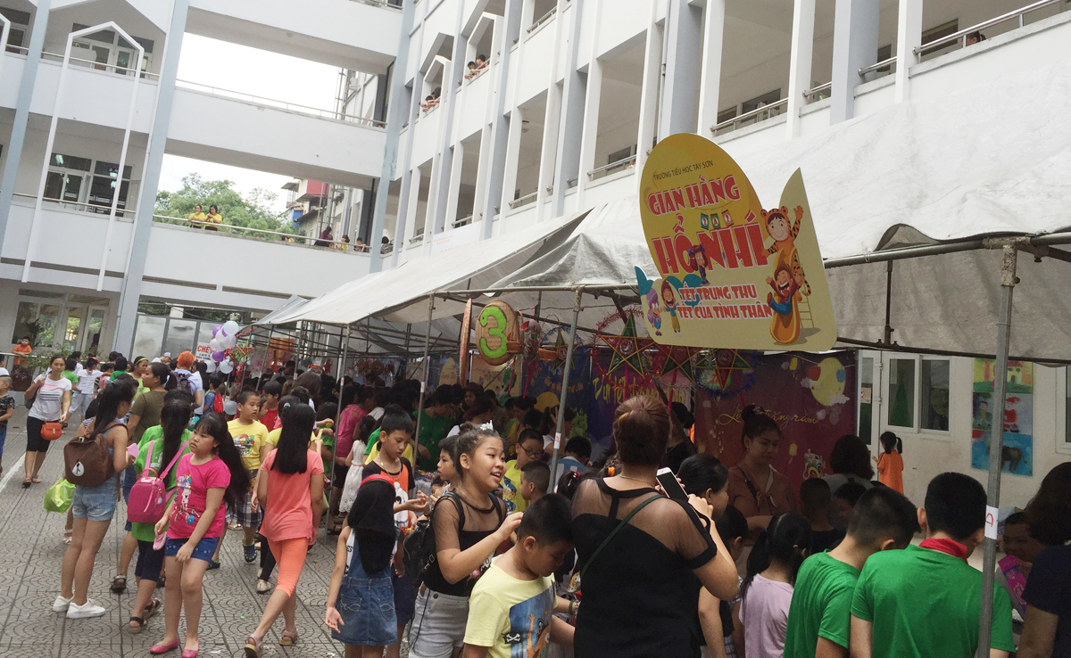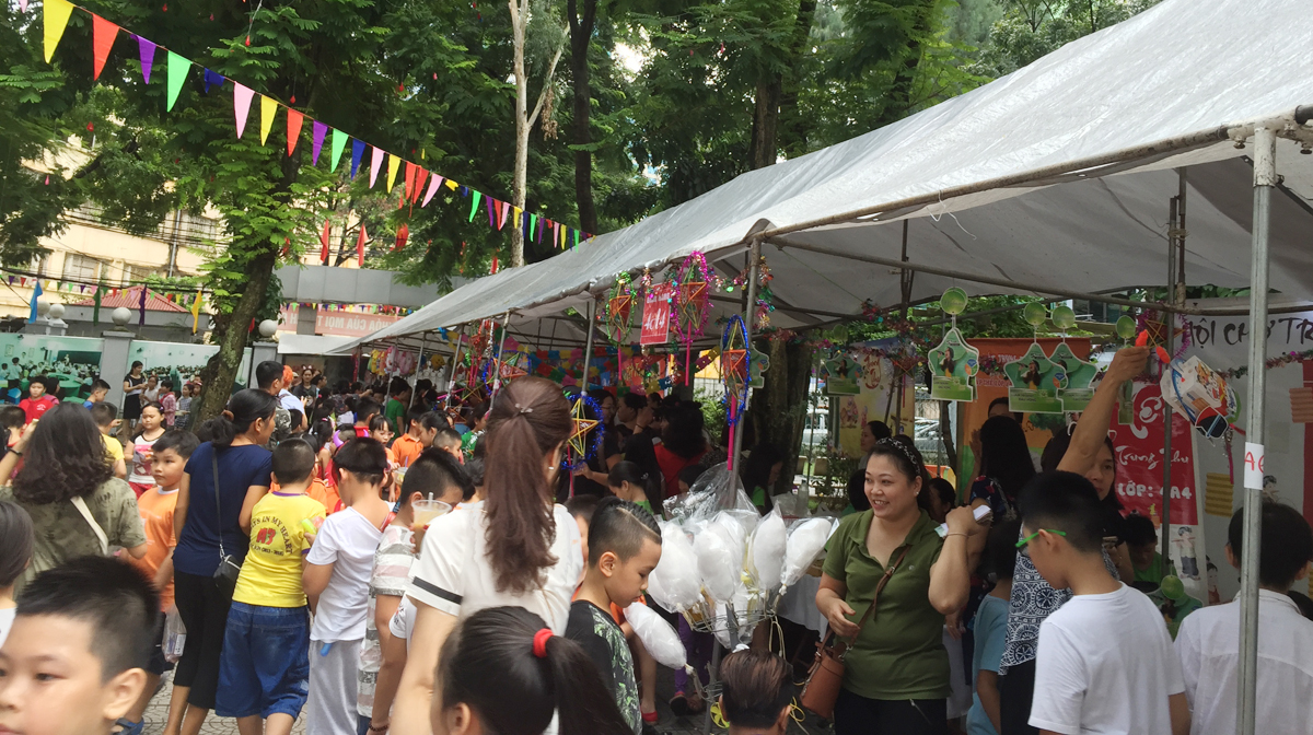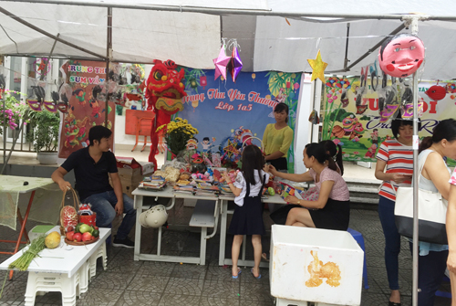 Từ buổi sáng trên sân trường đã diễn ra các hoạt động sôi nổi do cô giáo chủ nhiệm của các lớp cùng với học sinh của mình tổ chức như: làm mặt nạ, làm bánh trung thu, làm đèn lồng… Chưa đến 10 giờ các gian hàng của hội chợ đã sẵn sàng khiến cho khung cảnh sân trường trở nên vô cùng rực rỡ, vô cùng hấp dẫn với đủ loại hình trang trí và hàng hóa bày bán. Ai ai cũng hào hứng, sôi nổi hơn bởi vì ý nghĩa của hội chợ chính là chung tay giúp đỡ trẻ em nghèo có hoàn cảnh khó khăn.