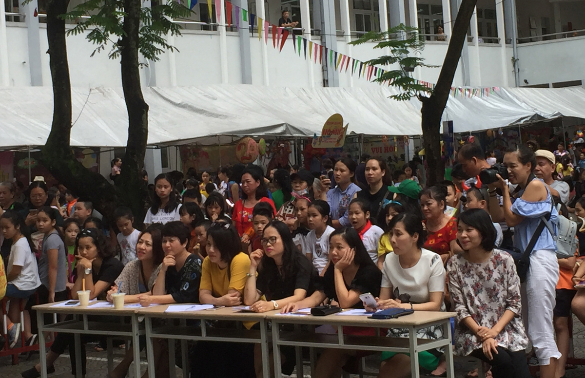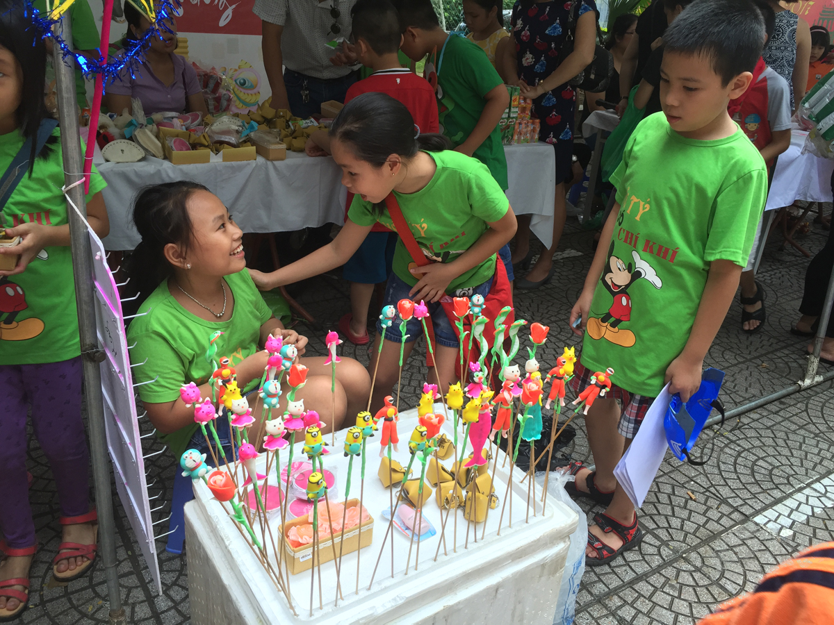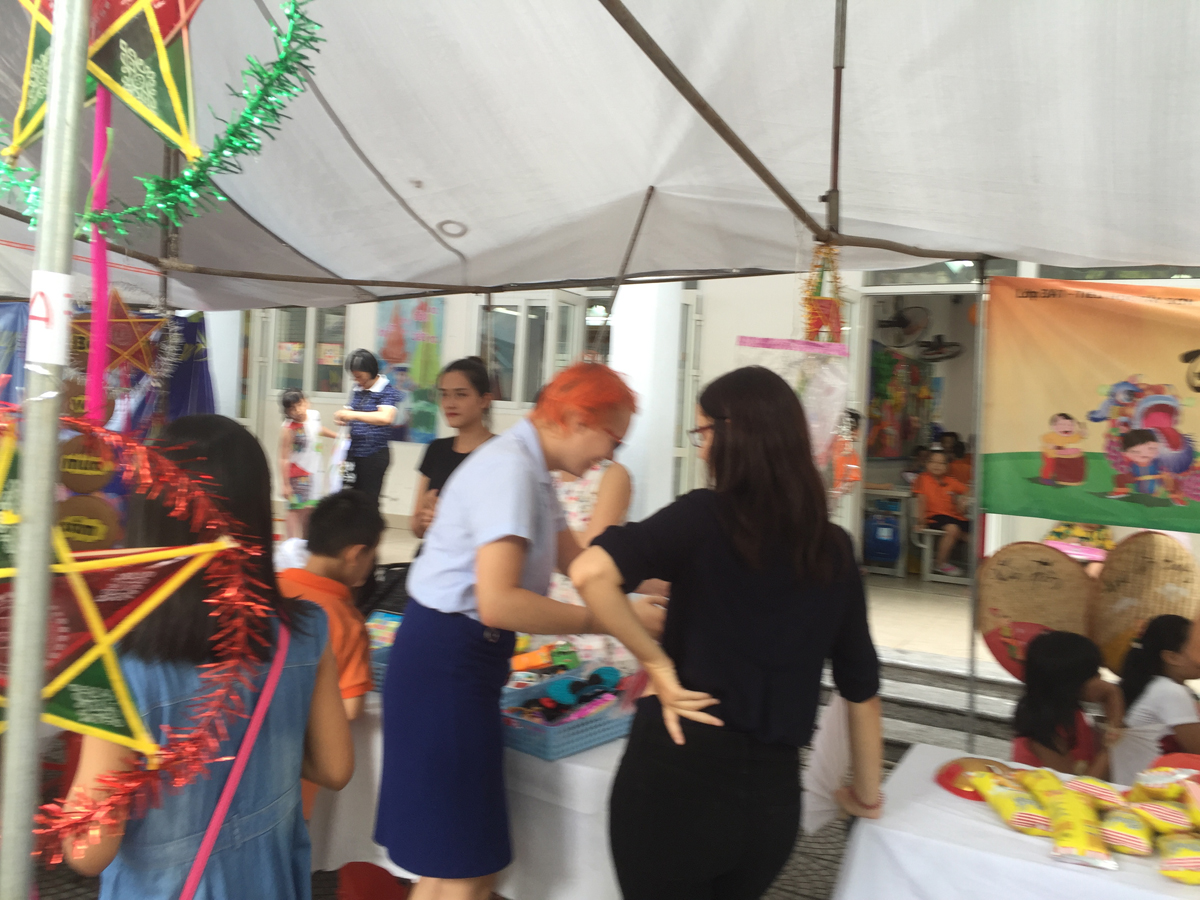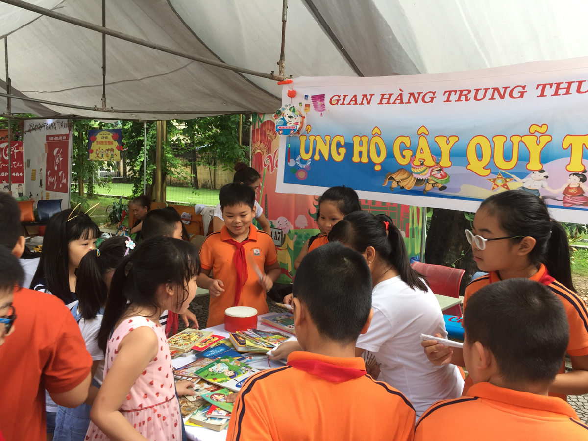 Từ buổi sáng trên sân trường đã diễn ra các hoạt động sôi nổi do cô giáo chủ nhiệm của các lớp cùng với học sinh của mình tổ chức như: làm mặt nạ, làm bánh trung thu, làm đèn lồng… Chưa đến 10 giờ các gian hàng của hội chợ đã sẵn sàng khiến cho khung cảnh sân trường trở nên vô cùng rực rỡ, vô cùng hấp dẫn với đủ loại hình trang trí và hàng hóa bày bán. Ai ai cũng hào hứng, sôi nổi hơn bởi vì ý nghĩa của hội chợ chính là chung tay giúp đỡ trẻ em nghèo có hoàn cảnh khó khăn.