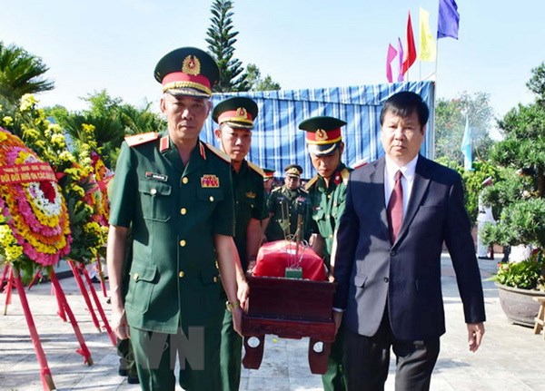 | Lễ truy điệu và an táng 11 hài cốt liệt sỹ quân tình nguyện và chuyên gia Việt Nam hy sinh tại chiến trường Lào. (Ảnh: Quốc Việt/TTXVN) |